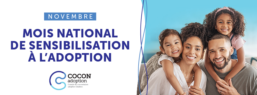 Chaque année, le Mois national de sensibilisation à l’adoption met en lumière les réalités de l’adoption et vise à briser les préjugés. En novembre, le Comité de concertation adoption Québec (COCON adoption) vous invite à prendre part à la campagne et à faire rayonner le message aux quatre coins du Québec.